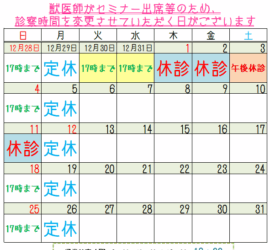 ≪診察時間変更日≫ ・12/7(日) 9:00~12:00(診察午前のみ) ・12/30(火) …